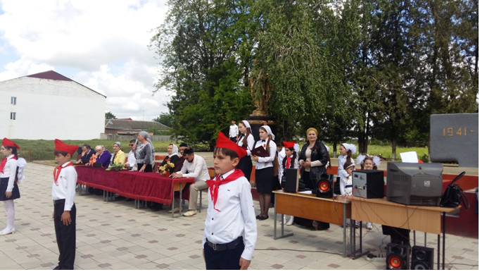 8. Заключительным этапом празднования 71-й годовщины Победы в Великой Отечественной войне стал торжественный митинг 9 мая у памятника «Погибшим односельчанам». На митинге выступили директор МБОУ «Алпатовская СОШ» Ибрагимова А.И., глава администрации Икаев Х. М. и т.д. Собравшиеся отметили, что, ежегодно празднуя 9 мая День Победы, мы вспоминаем героев – защитников, ветеранов войны. И молодое поколение,