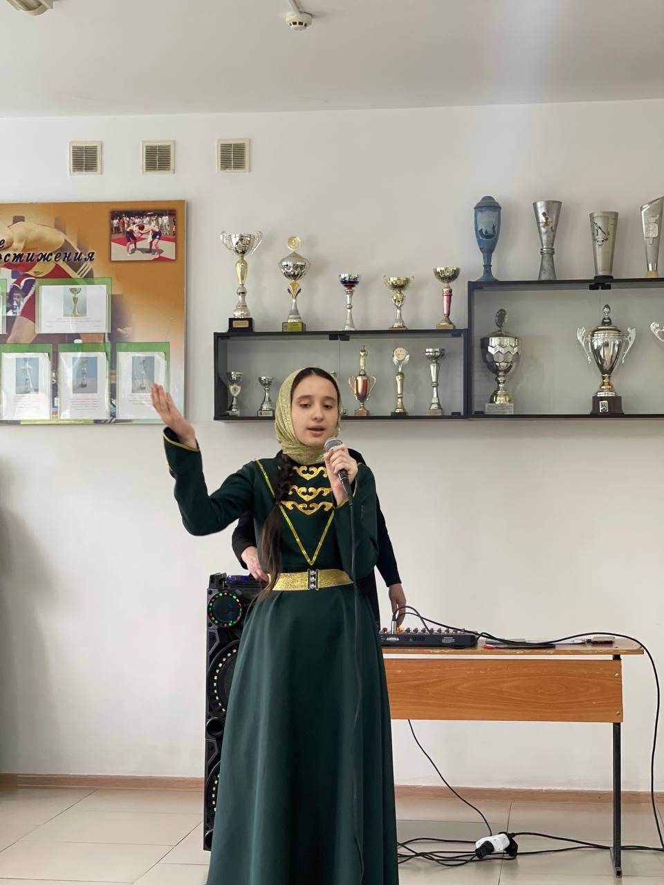 С приветственными словами и поздравлением выступила директор нашей школы Гулиева С.Г. Она выразила огромную благодарность всем бывшим и нынешним сотрудникам школы, а также всем присутствующим в зале выпускникам. Учащиеся 5–9 х классов под руководством ЗВР Басханова Адама И. и Аткаевой Лайлы У. руководитель локального хорового кружка СТК Алпатово подготовили праздничную программу. Звучали песни о школе, танцы, шутки, воспоминания выпускников. Гостей праздника приветствовала ученица 7 г класса Мовтигова Амина с торжественным национальным танцем, были исполнены песни в исполнение Тибоевой Сании выпускницы Алпатовской СОШ и в исполнение вокального коллектива в составе учениц 5 и 9 классов.