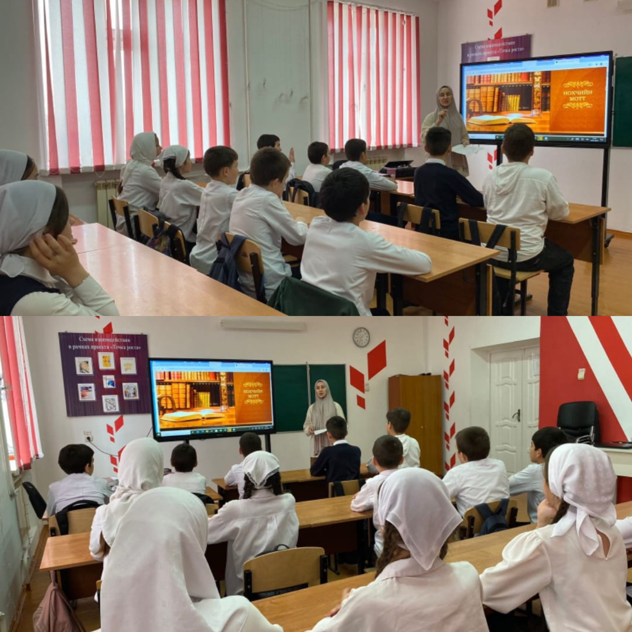 В МБОУ "Алпатовская СОШ им В.Т. Малиновского" прошел открытый урок "Нохчийн мотт", который провела учитель чеченского языка Базиева Хава Мусаевна.