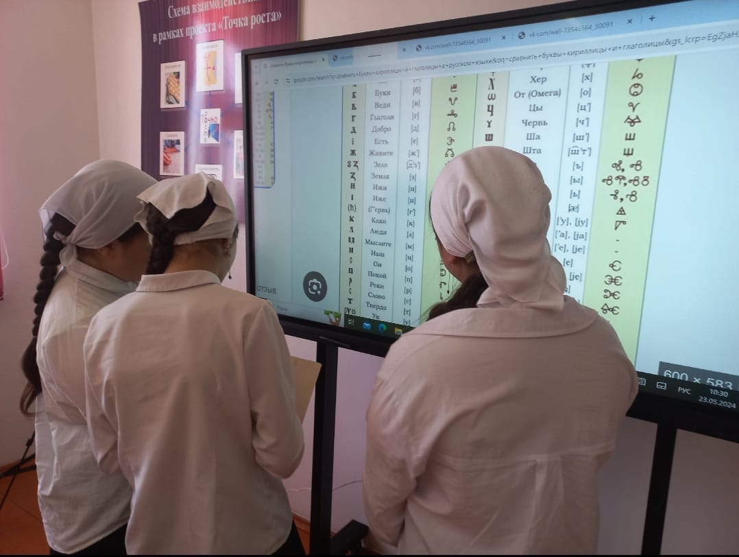 24.05.2024Празднование Дня славянской письменности и культуры в Российской Федерации связано с именами святых равноапостольных Кирилла и Мефодия, которые считаются создателями первого славянского алфавита. В МБОУ "Алпатрвская СОШ им В.Т. Малиновского" прошёл Интерактивный урок «Кириллица и Глаголица: в поисках новых смыслов знакомых букв», в рамках которого советник директора по воспитанию Баужис Любовь Андреевна познакомила обучающихся с буквами Кириллицы и Глаголицы. В конце занятия ребята самостоятельно написали своё имя с помощью букв Кирилицы. Можно было попробовать написать современные слова на старославянском языке, пройдя по QR-коду.