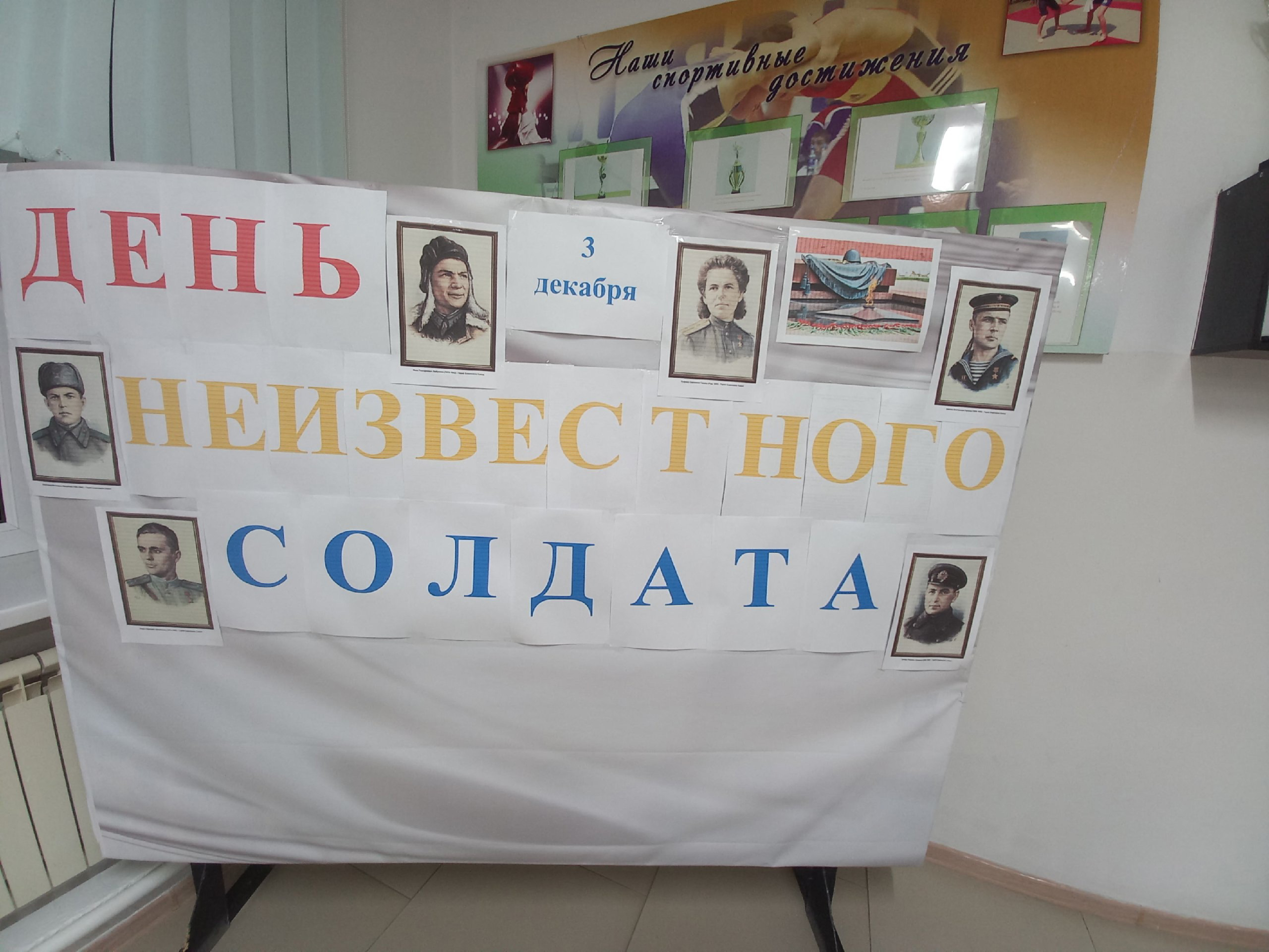 В МБОУ "Алпатовсаая СОШ им В.Т. Малиновского" в преддверии памятной даты 3 декабря в России, которая ежегодно отмечается с 2014 года, в память о российских и советских воинах, погибших во время боевых действий на территории страны или за её пределами, и чьи имена остались неизвестными, советник директора по взаимодействию с общественными обьединениями Баужис Любовь Андреевна с учащимися школы организовала выставку "Память поколений" с целью сохранение памяти о героях войны.