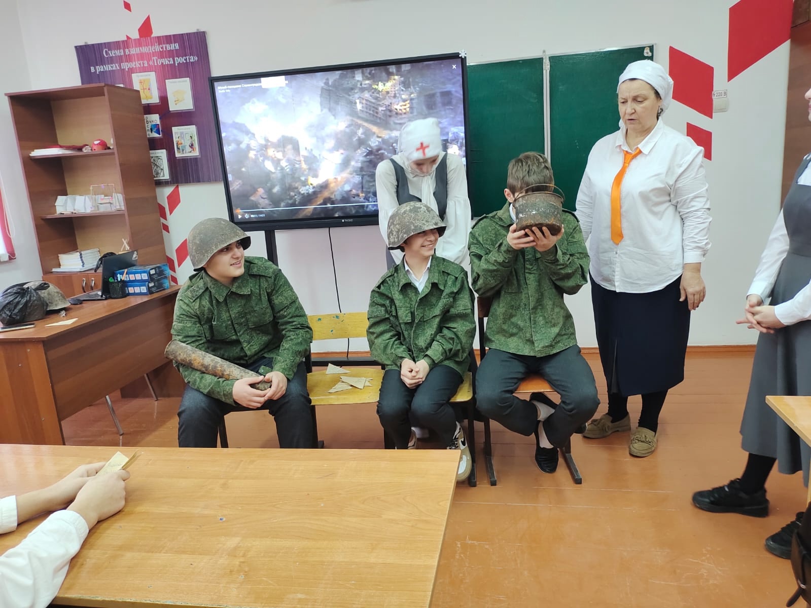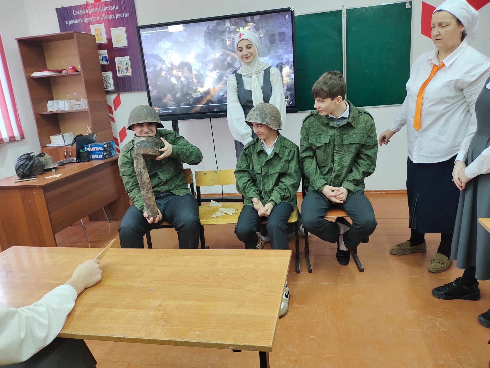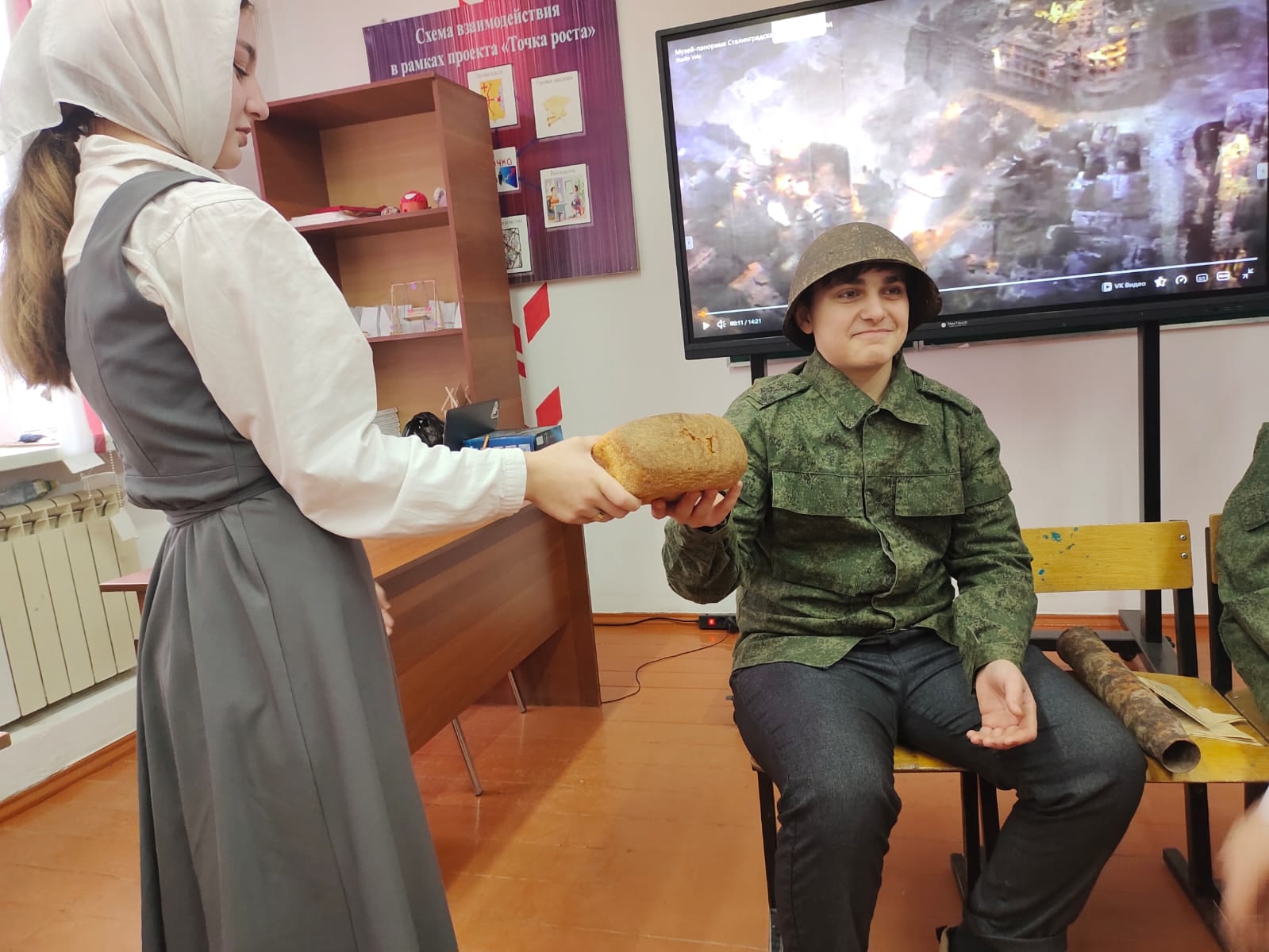 Советник директора по воспитанию и взаимодействию с детскимиобщественными объединениями Любовь Андреевна Баужис совместно с учащимися организовала иммерсивный театр, в котором был показан "Один день из жизни в Сталинграде".Зрители вместе с актерами прожили один день в Сталинграде 1942 года.
