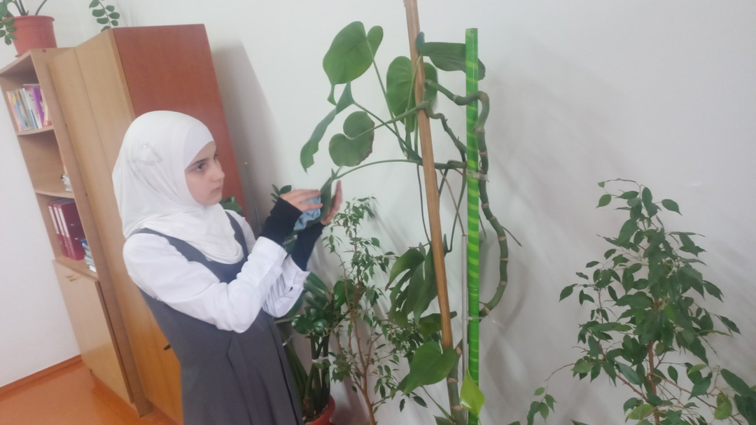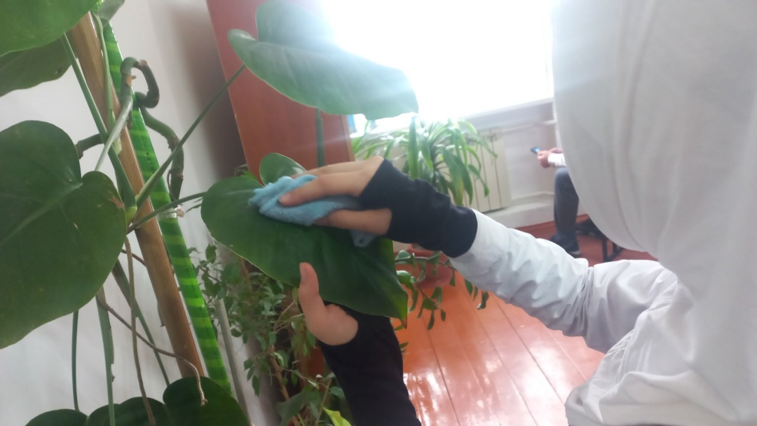 В учебных кабинетах ухаживают за цветами - "зелеными докторами".