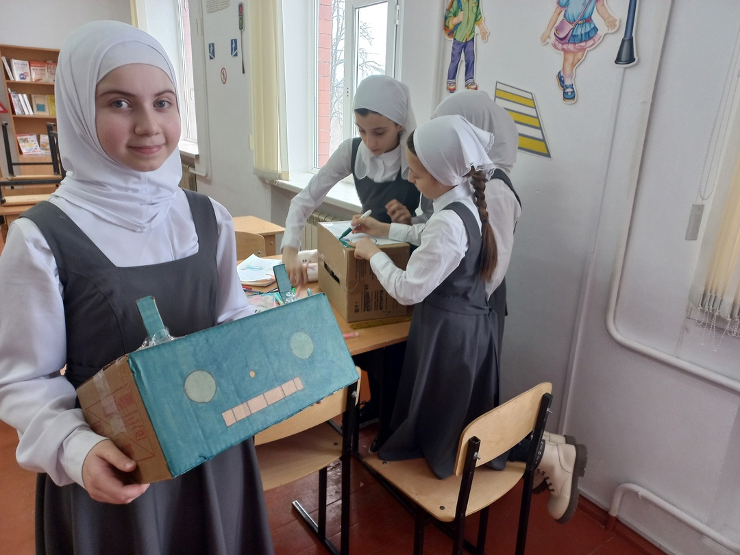 посвящённом Дню Российской науки, «Машинариум».Учащиеся из вторсырья изготовили роботов, рассказали о пользе роботов в нашей жизни.В конце мероприятия учащиеся прорекламировали модели своих роботов.