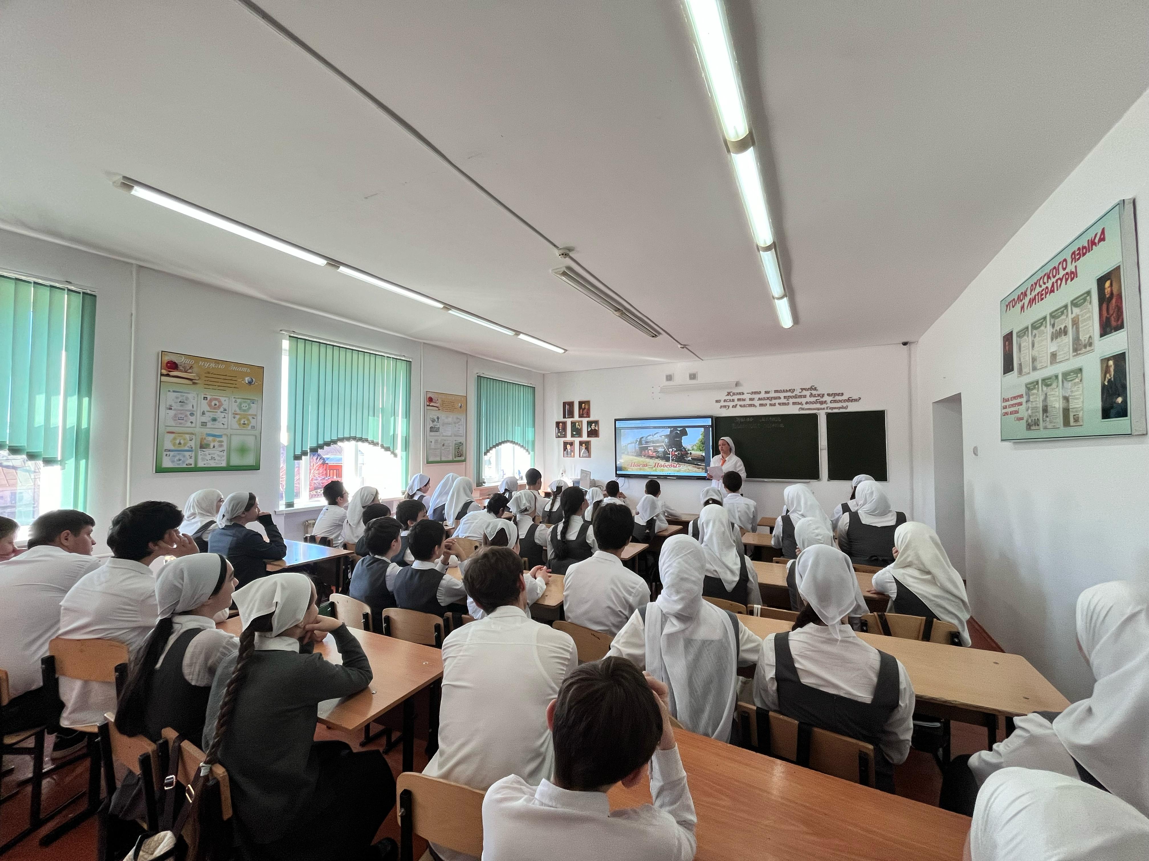 Среди ключевых событий: тематические классные часы, посвященные героям войны и основным сражениям, организованные для учеников всех возрастных групп. Особое внимание уделялось рассказам о детях-героях и роли женщин в годы войны.