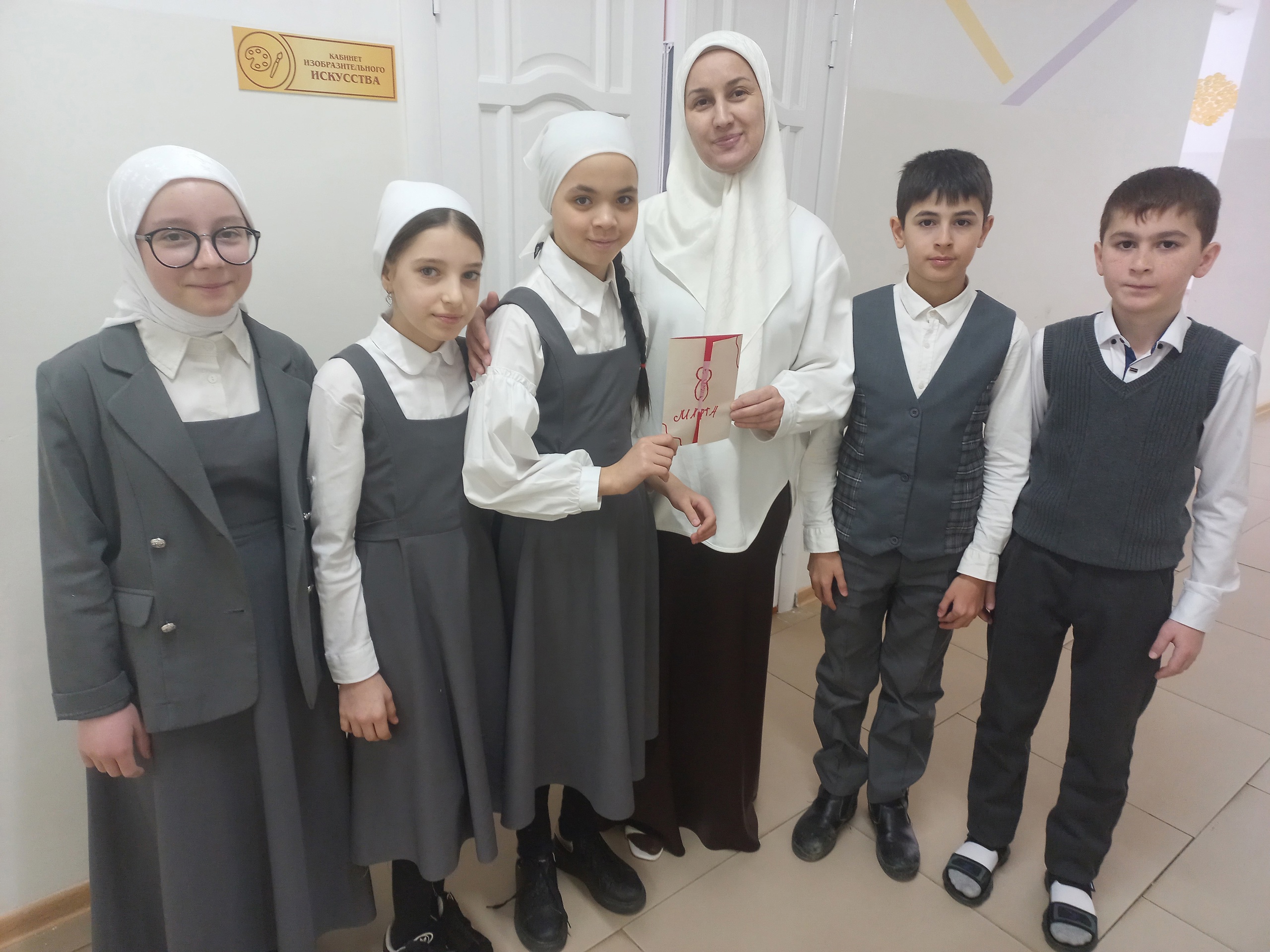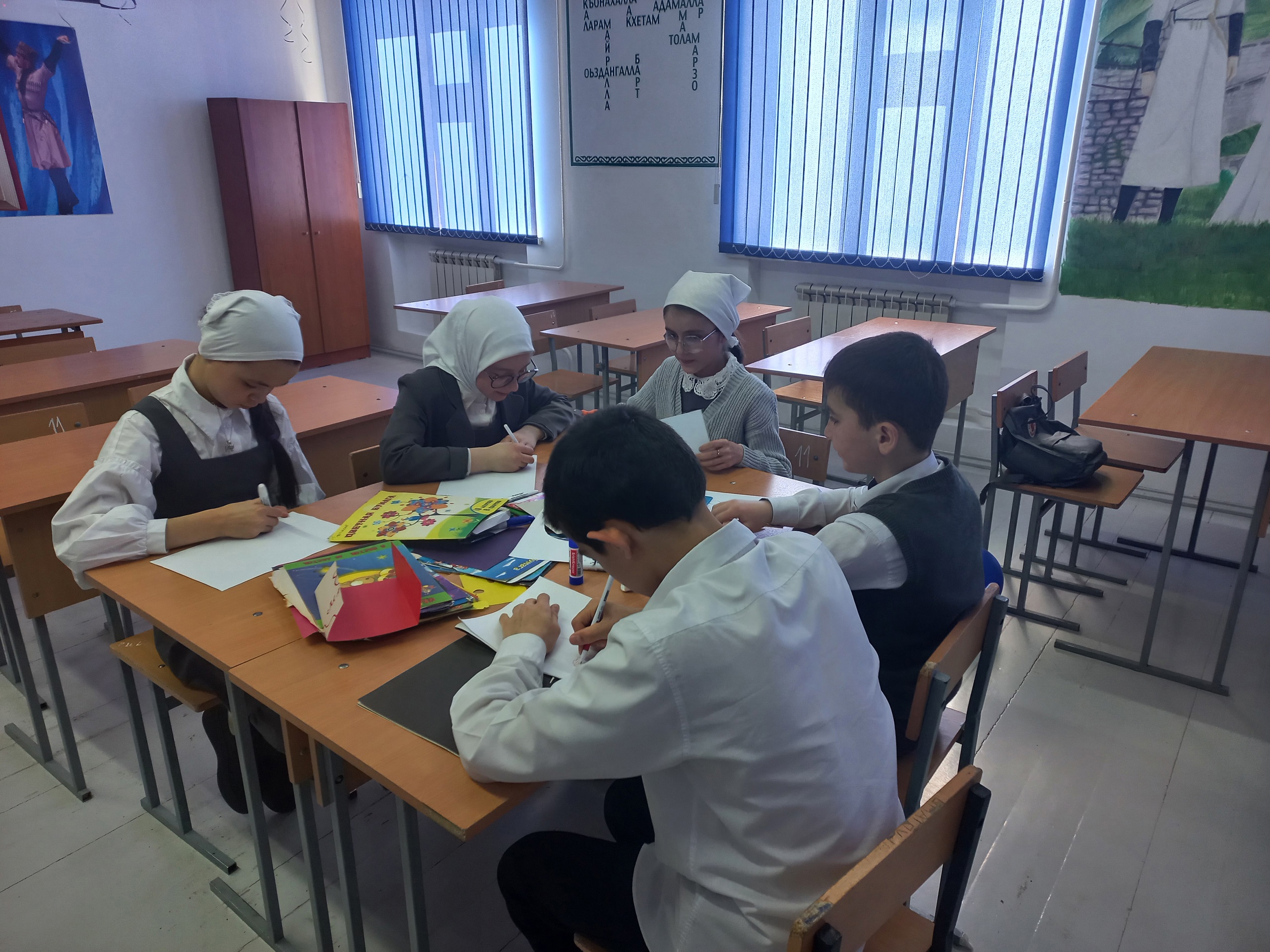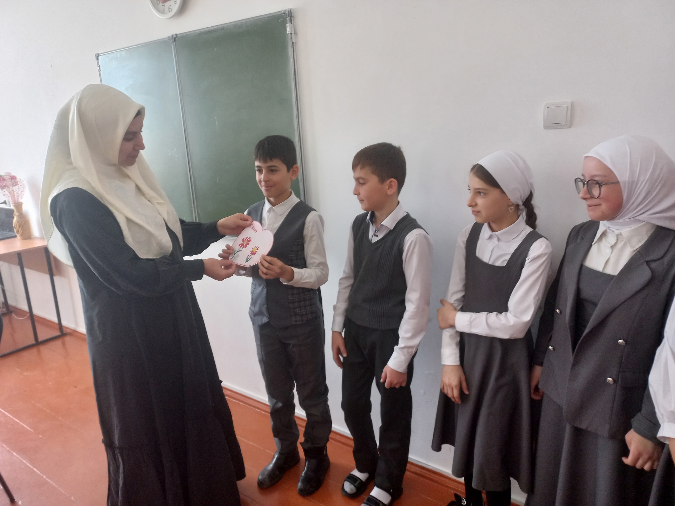 к акции «Вам, Любимые». Ученик 7г класса Хамидов Рамзан провел мастер класс для пятиклассников по изготовлению поздравительных открыток.