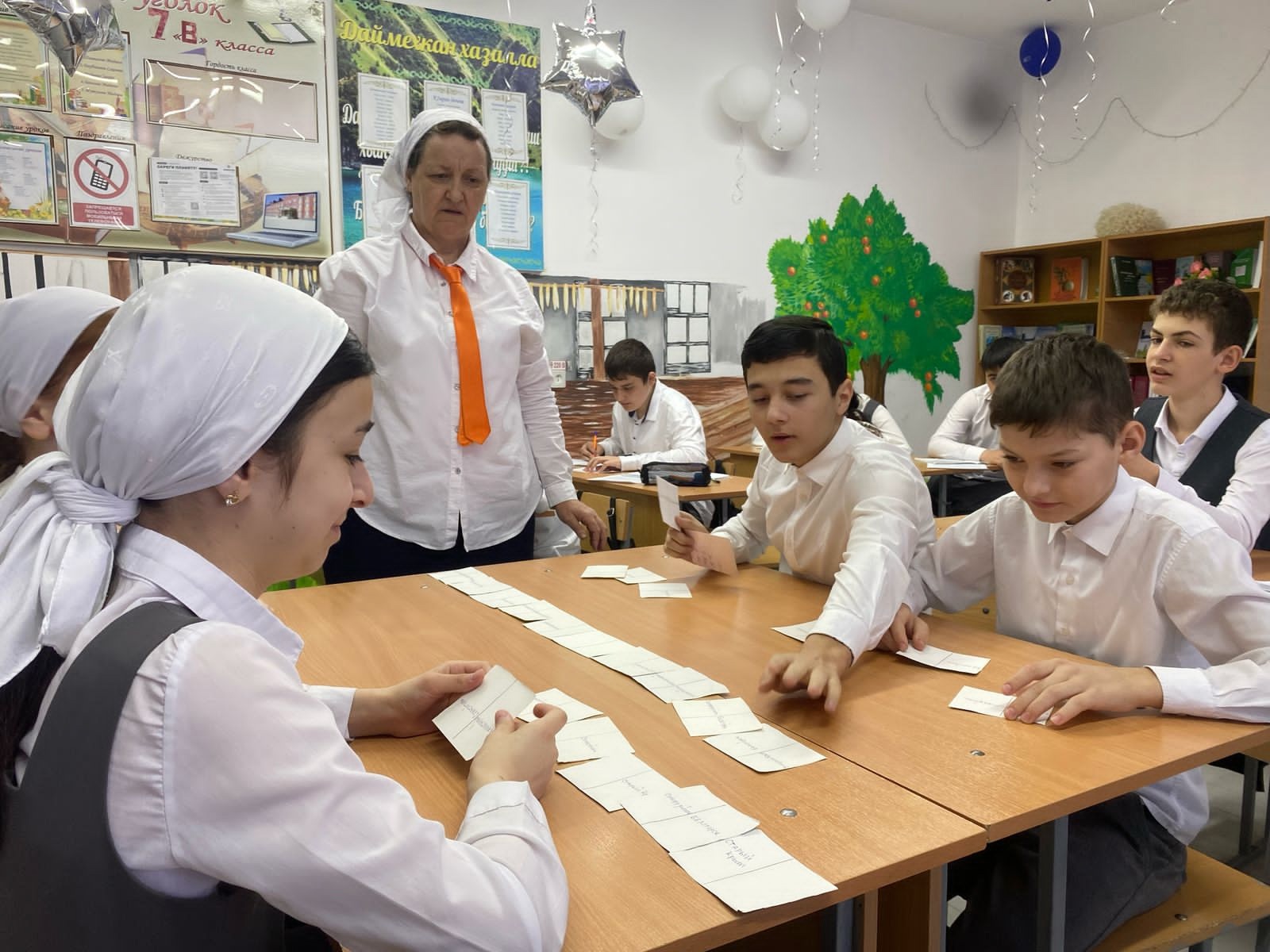 Учащиеся узнали, что со 2 января по 11 июля 1787 г. состоялось уникальное по масштабам, числу участников, стоимости и времени в пути путешествие Екатерины II в Крым."…Чтобы быть в курсе состояния дел в провинциях, Екатерина II время от времени предпринимала путешествия по стране. Целью таврического путешествия была инспекция Новороссии, присоединённой к России в результате недавних войн с турками и переданной под управление Г. Потёмкина, а также встреча с австрийским императором Иосифом для обсуждения дальнейших планов совместных действий против Османской империи…"В ходе игры, по принципу домино, учащиеся сравнили города на катрочках с городами маршрута царского вояжа. Победила Магомадова Ясмина, она быстрее избавилась от карточек.