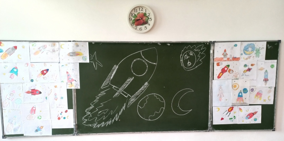 На занятии школьники узнали больше о нашей Вселенной, освоении космоса, о первом, легендарном полёте космического корабля Восток-1 с Юрием Гагариным на борту Волонтеры создали выставку творческих работ о звёздах и планетах, среди которых самой прекрасной является родная Земля.