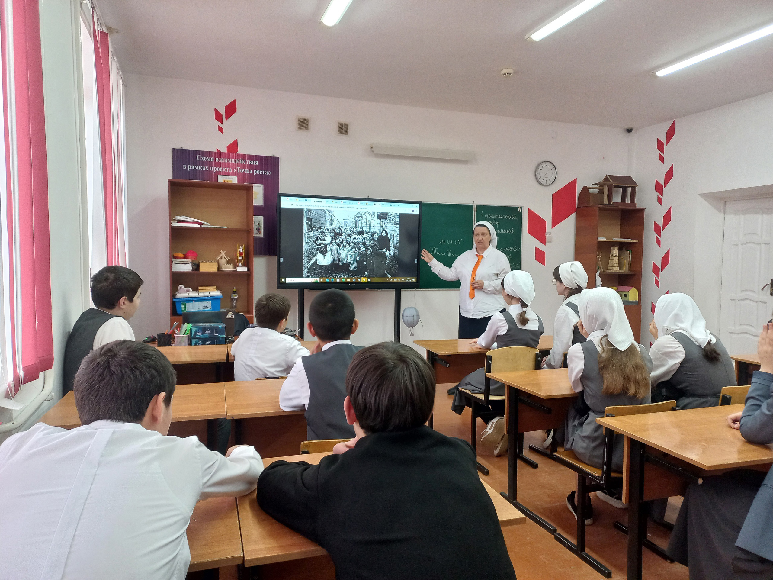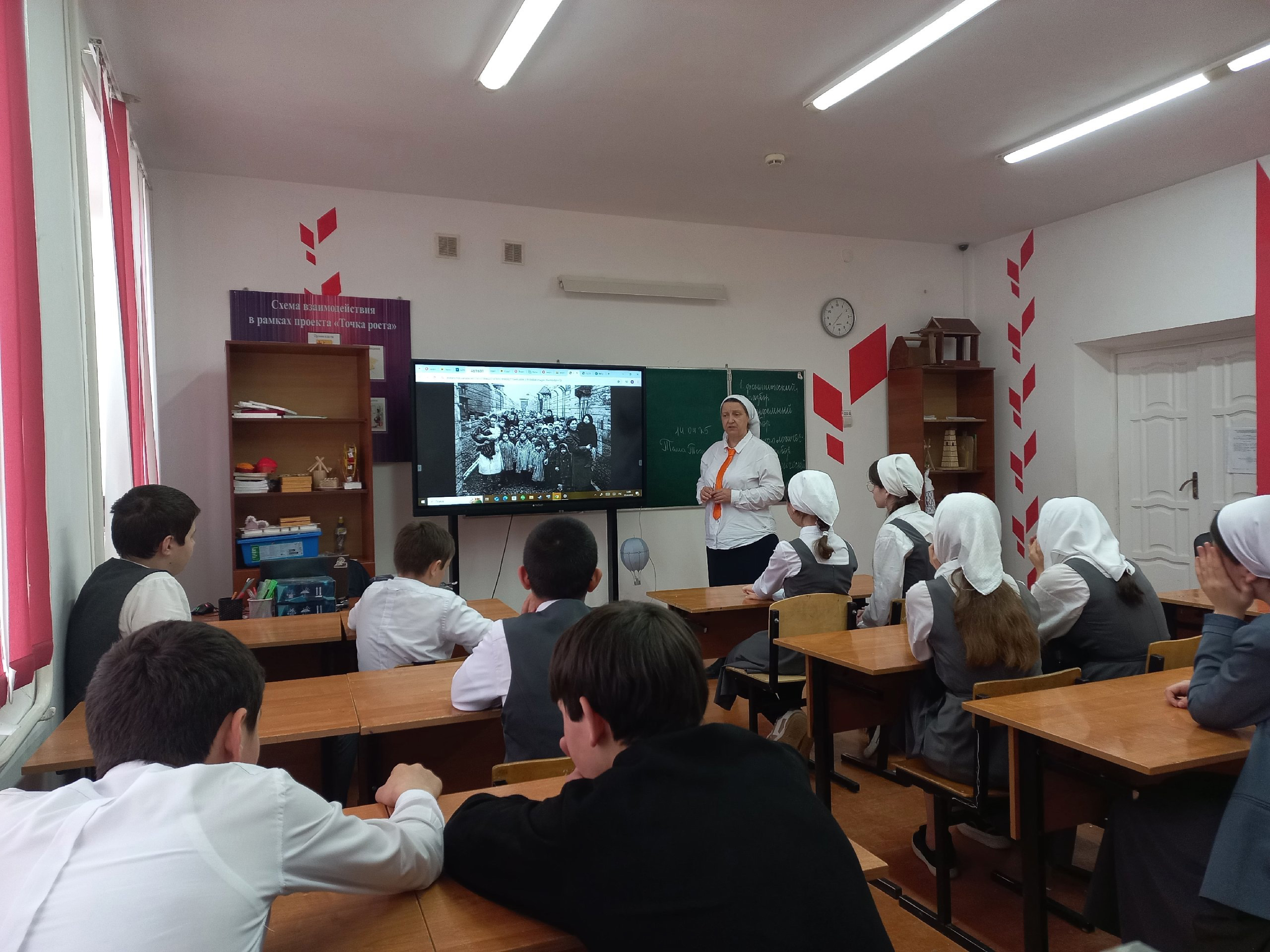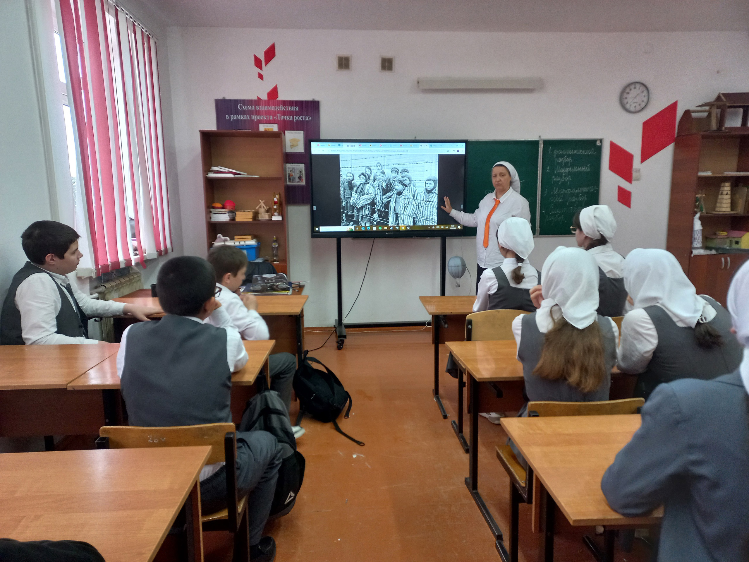 Советник директора по воспитанию и взаимодействию с ДОО Баужис Любовь Андреевна провела урок - реконструкцию «Без срока давности». Данный урок посвящен памяти жертв геноцида Советского народа от немецко-фашистских захватчиков в годы Великой Отечественной войны 1941 – 1945 гг.