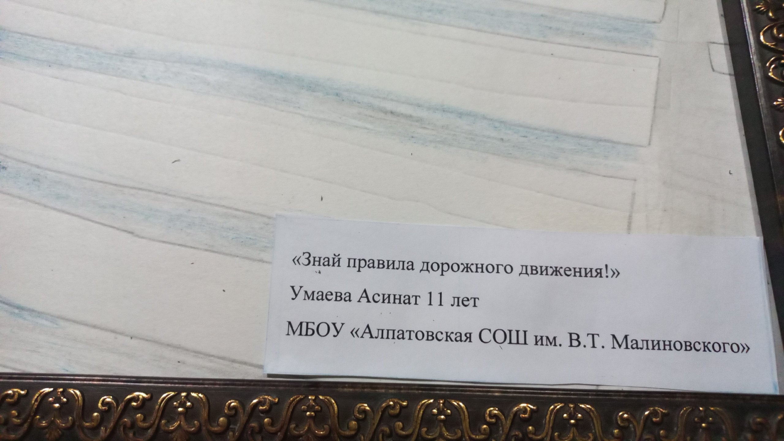 Активист отряда ЮИД "Светофорчик" МБОУ "Алпатовская СОШ им В.Т. Малиновского" Умаева Асинат приняла участие в Муниципальном этапе республиканского конкурса рисунков «Детство без опасности» среди обучающихся образовательных организаций Наурского муниципального района.