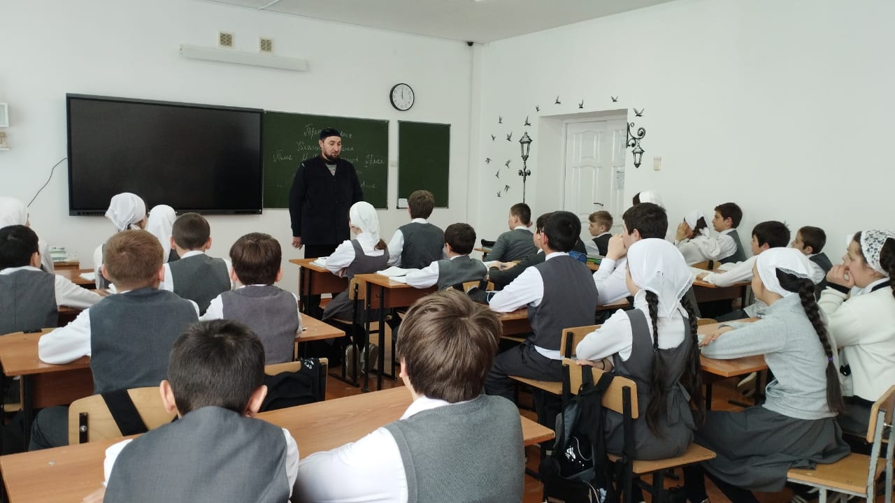 В "МБОУ Алпатовская СОШ им.В.Т.Малиновского" Икаев Х.М. провел беседы в 5-8 классах, направленные на формирование у несовершеннолетних ценностей, бережного отношения к родному языку,природе и животным родного края.
