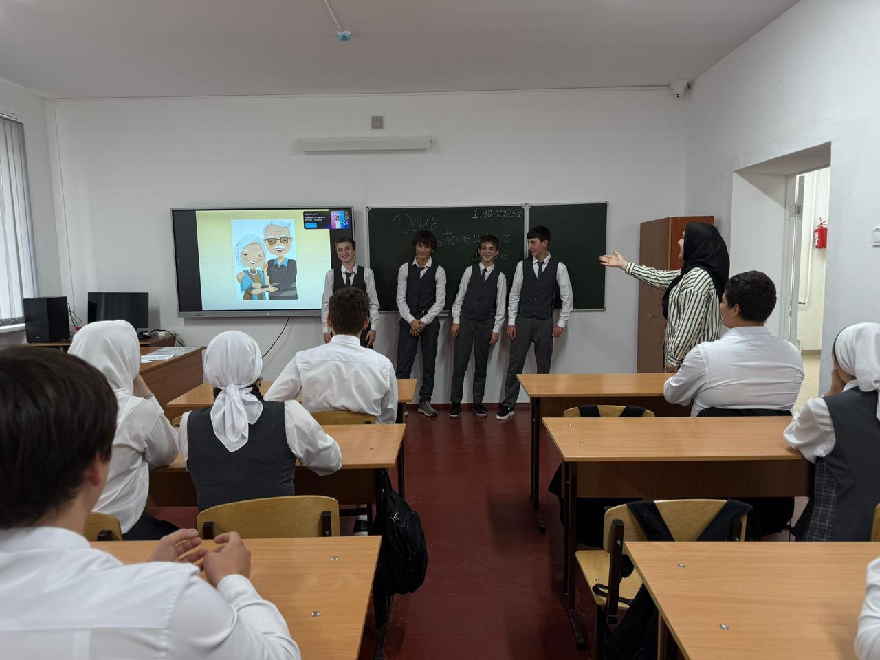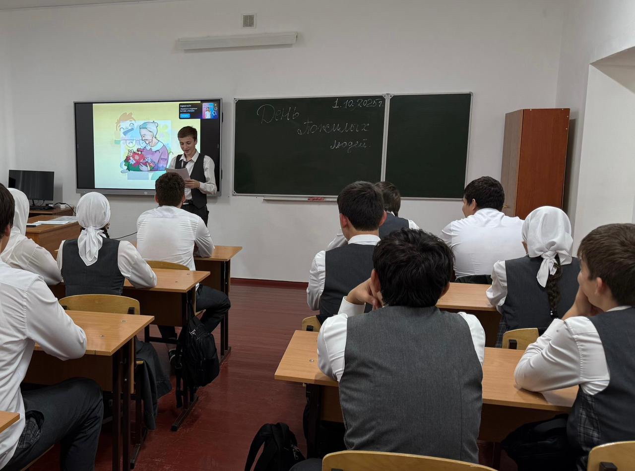 01.10.2025г. в школе прошли классные часы, приуроченные ко Дню пожилого человека. 1 октября открытый классный час провела Эльмира Рамзановна в 9 а классе. Дети рассказывали стихи и читали прозу, посвященную бабушкам и дедушкам, прославляя их мудрость, доброту и жизненный опыт.