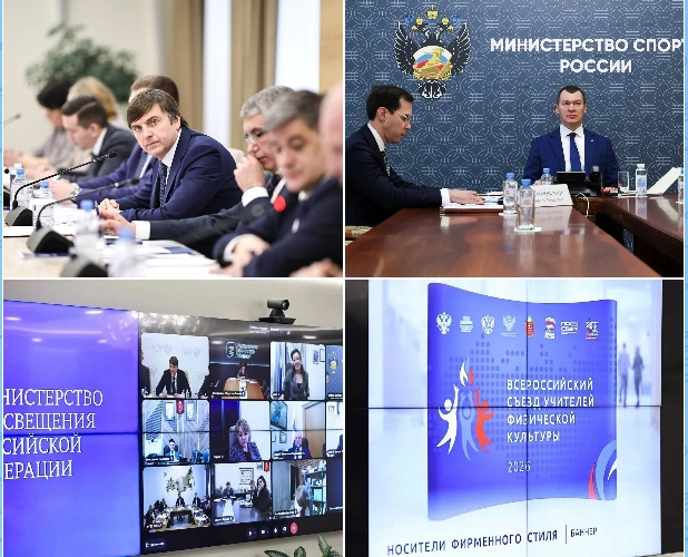 30.03.2026Первый Всероссийский съезд учителей физической культуры состоится в Тульской области с 18 по 22 мая Министр просвещения Сергей Кравцов и министр спорта Михаил Дегтярев провели заседание организационного комитета Всероссийского съезда учителей физкультуры.