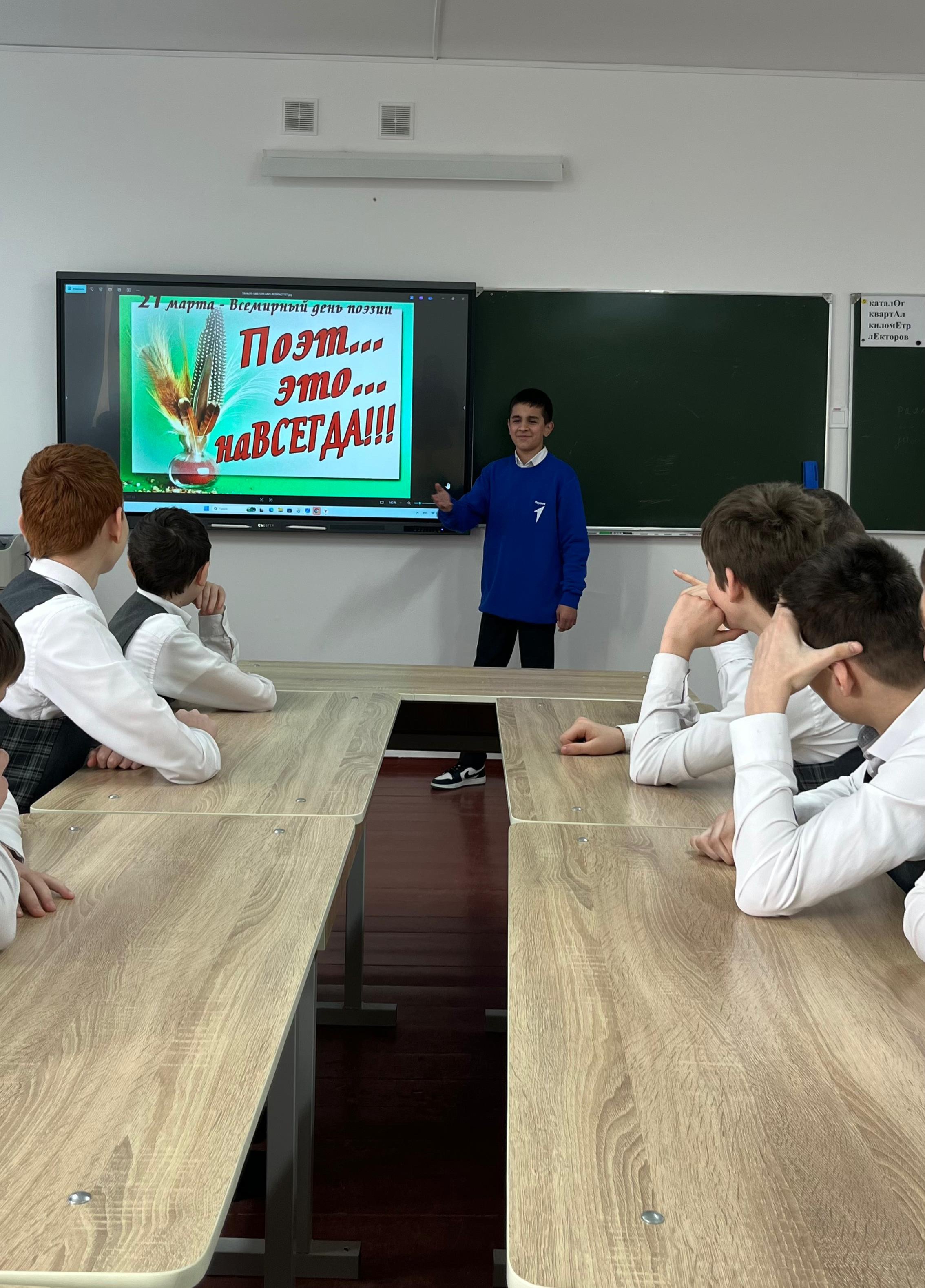 Ко Дню поэзии в МБОУ «Алпатовская СОШ им.В.Т.Малиновского» прошли увлекательные классные часы. Ученики читали стихи, говорили о красоте русского слова и вдохновлялись творчеством великих поэтов.